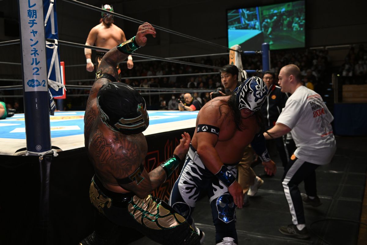 テンプラリオ&ゼイン・ジェイ(UNITED EMPIRE)組と、ウルティモ・ゲレーロ&ハツラツ・ゲレーロ組が激突した。