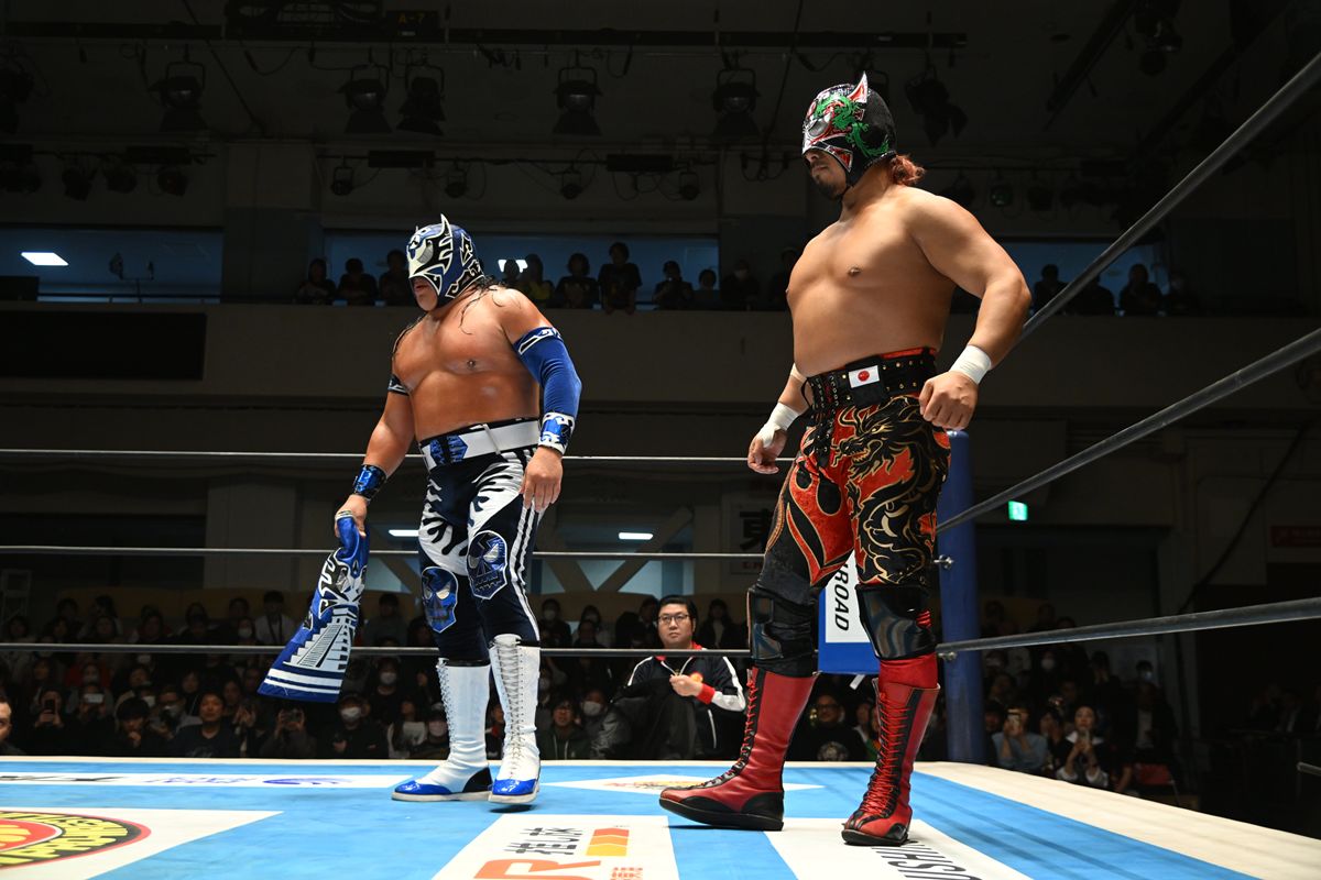【新日本】鷹木信悟の代打“ハツラツ・ゲレーロ”が後楽園を熱狂の渦に! 謎の覆面男がゼインを粉砕し、ウルティモと歓喜のダンス