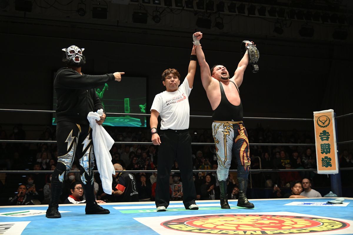 【新日本】1000日超の長期政権に終止符! アベルノが熟練の技でアトランティス・ジュニアから王座奪取、試合後はノーサイドで互いを称える