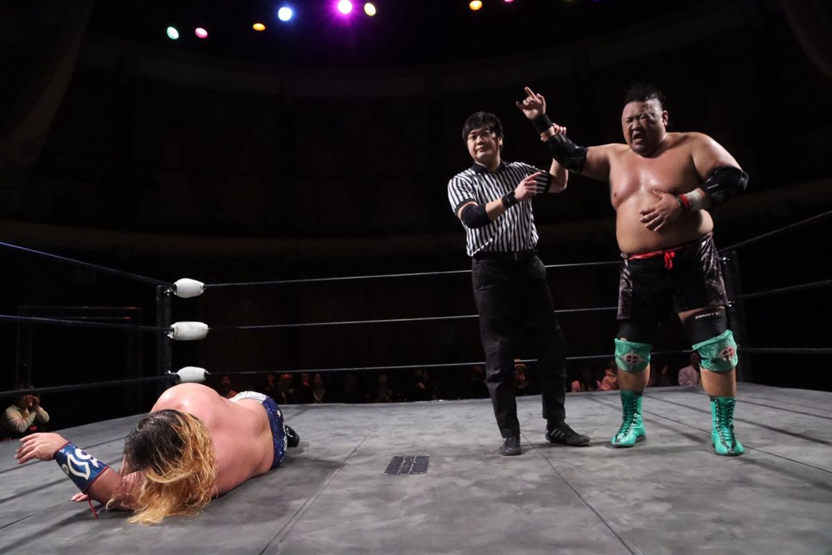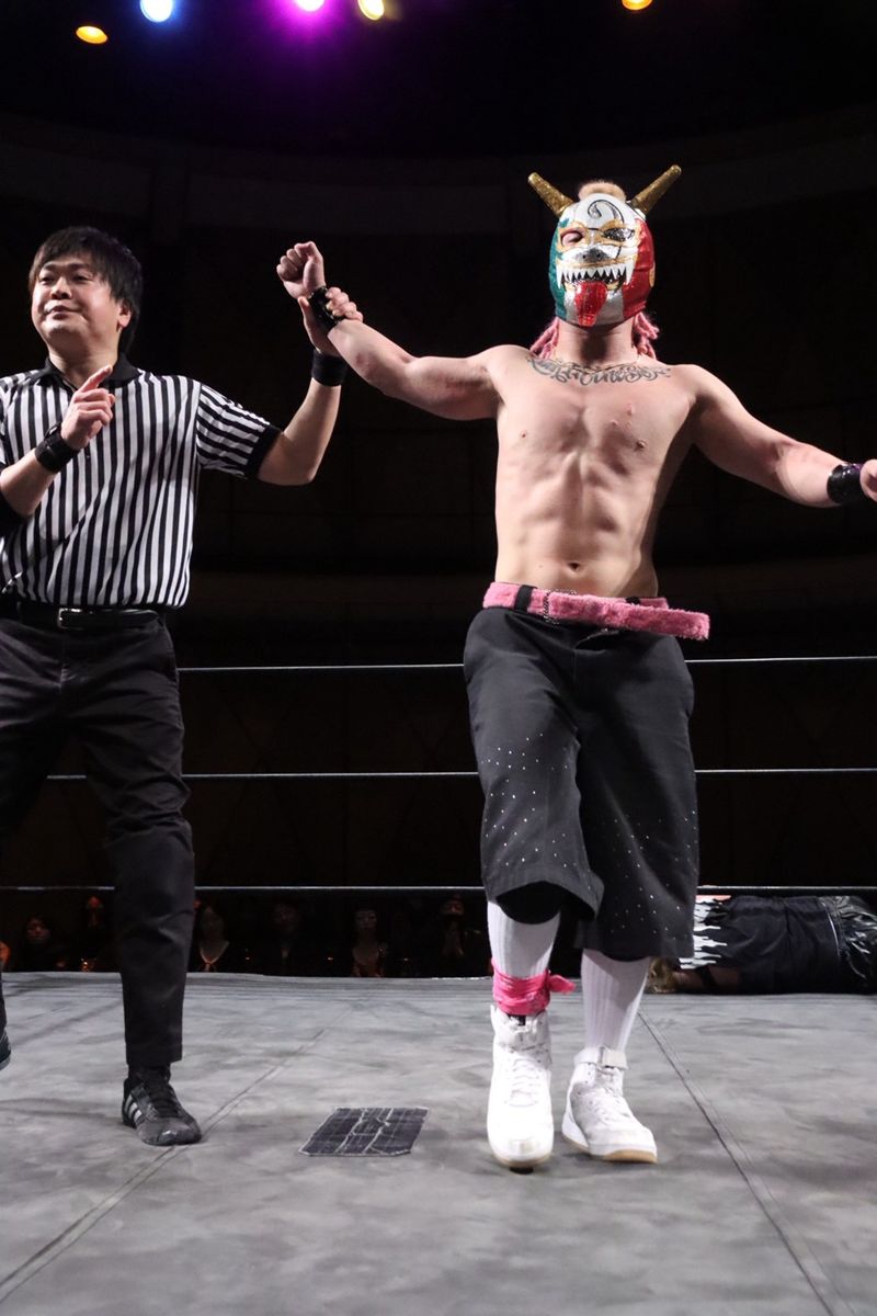HUB自主興行『毒人16』が28日(土)、アゼリア大正ホールで開催され、148名の観衆が詰めかけた。全7試合のシングルマッチが組まれた今大会では、波乱と熱戦が繰り広げられた。