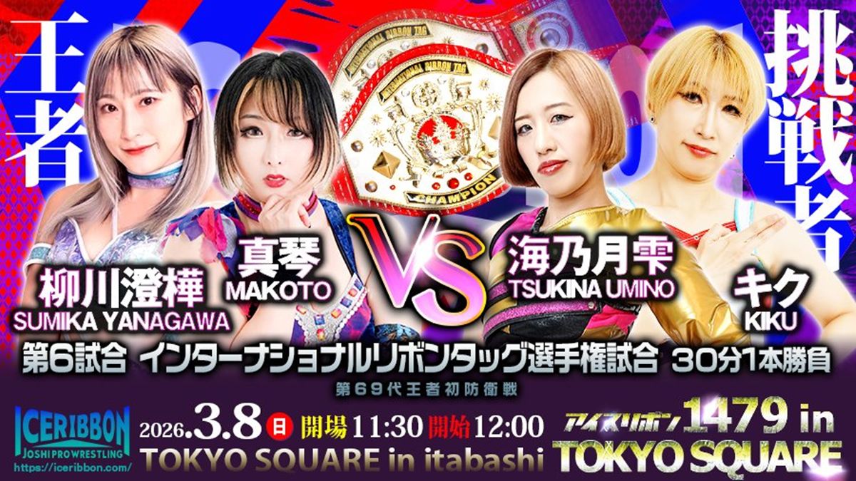 女子プロレス団体アイスリボンは、3月8日(日)に開催する『アイスリボン1479 in TOKYO SQUARE』の全対戦カードを発表した。