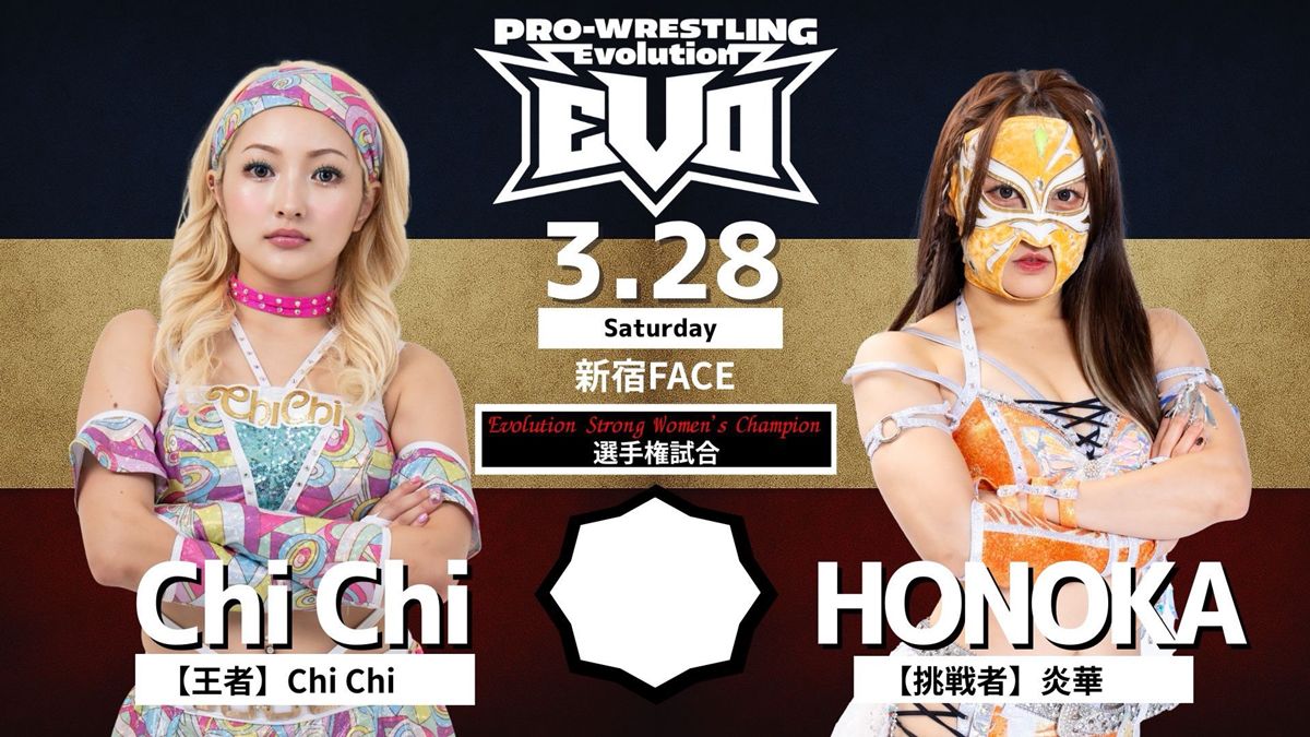【Evolution】3・28新宿でChi Chiと炎華が王座戦! 諏訪魔vs野村、石川vs愛鷹など注目の全6カード発表