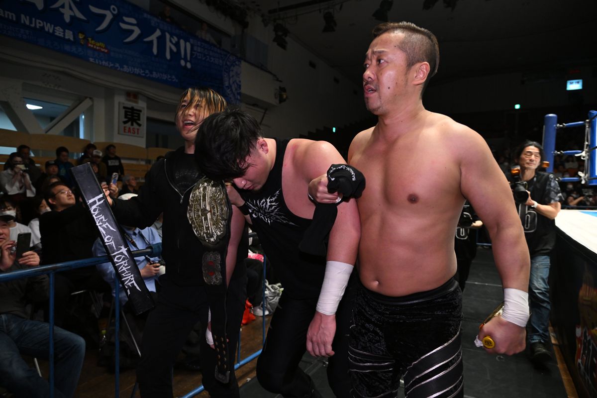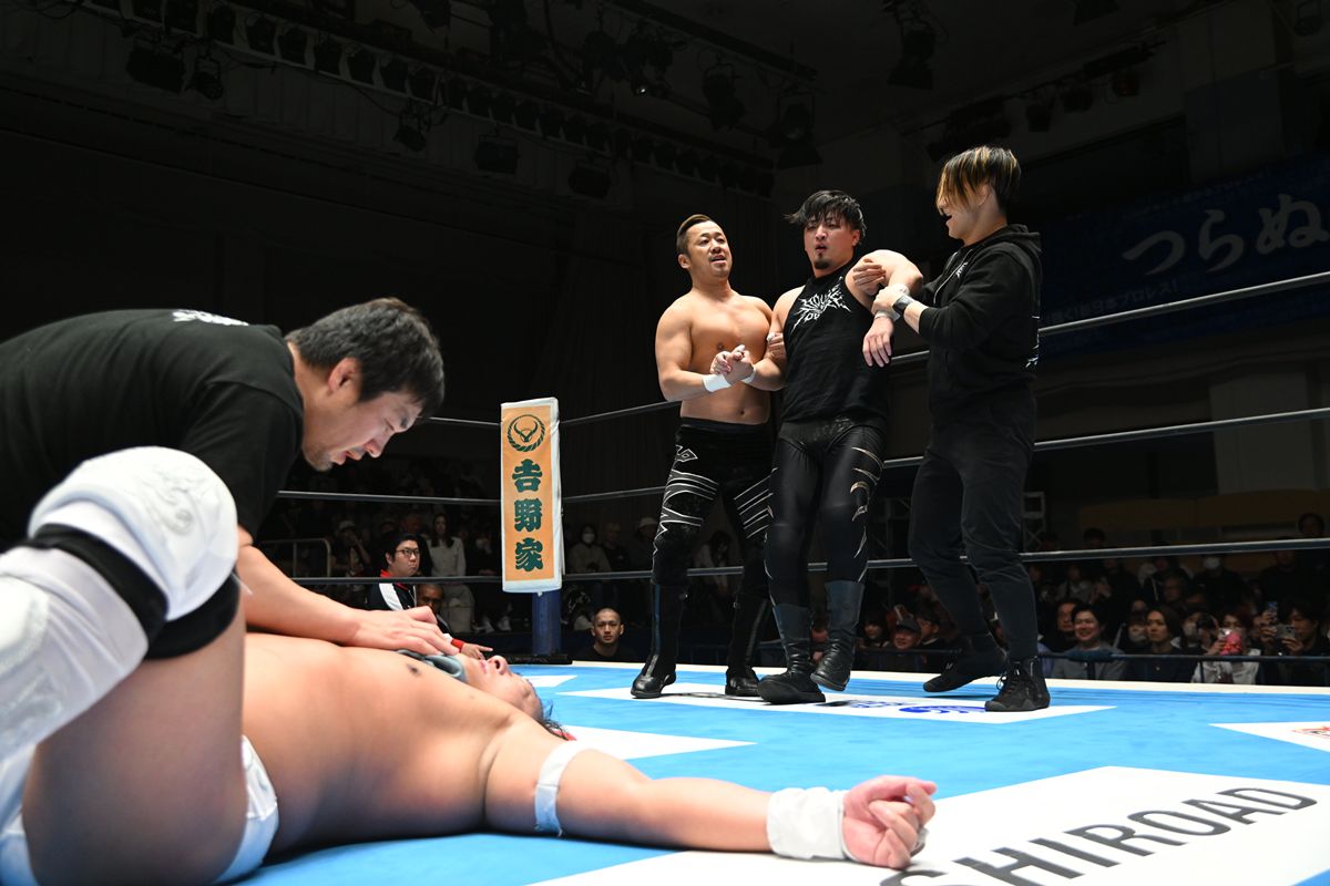 試合終盤には両陣営のセコンド陣がリングになだれ込む大乱戦となったが、タイチは混戦を切り抜け、必殺のバックドロップホールドを完璧に決めてみせた。