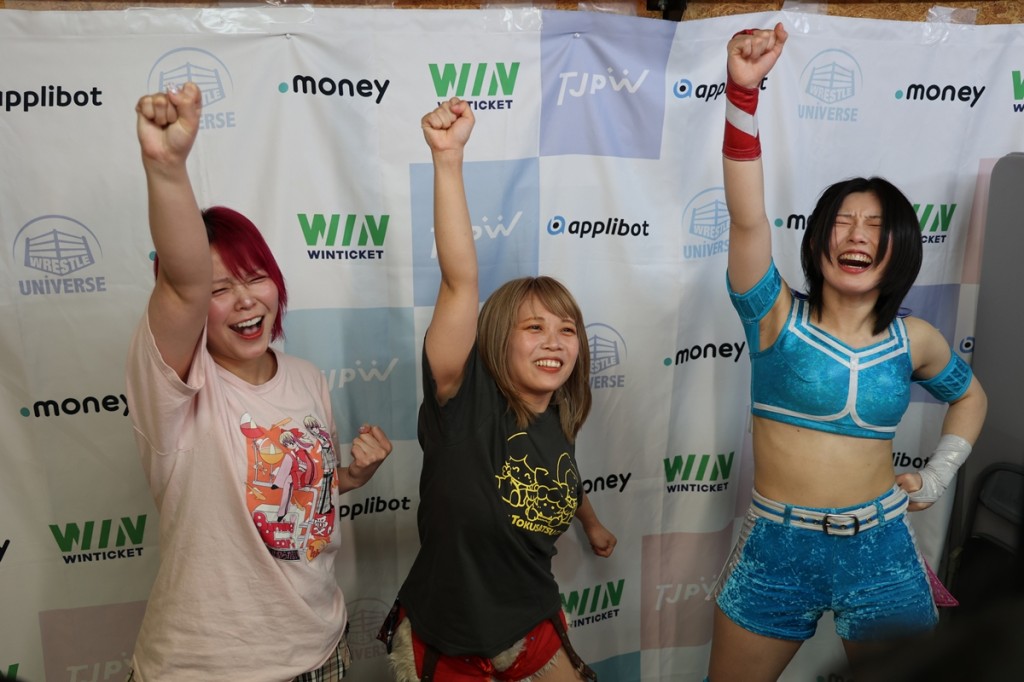 また、セミファイナルでは3・29両国でスーパー戦隊ヒーローとともに戦う東女特撮部(中島翔子&愛野ユキ&風城ハル)が瑞希&らく&原宿ぽむと対戦。東女特撮部の3人がぶつかってしまい同士討ち状態でダウン。原宿が中島にぽむ・ど・じゃすてぃすを叩き込んで殊勲の3カウントを奪取。東女特撮部は両国ではアジャコング&マックス・ジ・インペイラー&原宿と対戦するが、中島は「こんなんじゃ両国迎えられないよ! 両国国技館まで、もっともっと修行して、気持ちも新たに3人で強くならないと、みんなに顔向けできない! あと3週間で人は強くなれるっていうところを見せてやります。体現してみせます!」と気合を入れ直した。