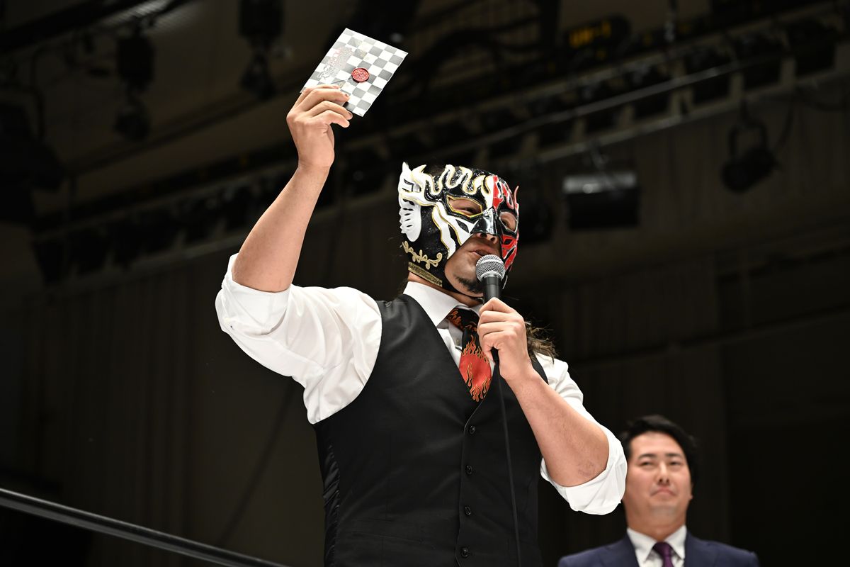 エル・デスペラードは「伊藤ちゃんの一言でやりたいことが見つかった。ホントは私の興行の告知みたいになったすいません。ぜひDEATH VEGAS Invitationalに出てほしい」と語りかけ、招待状の1枚目を提示。