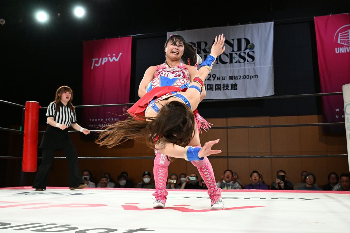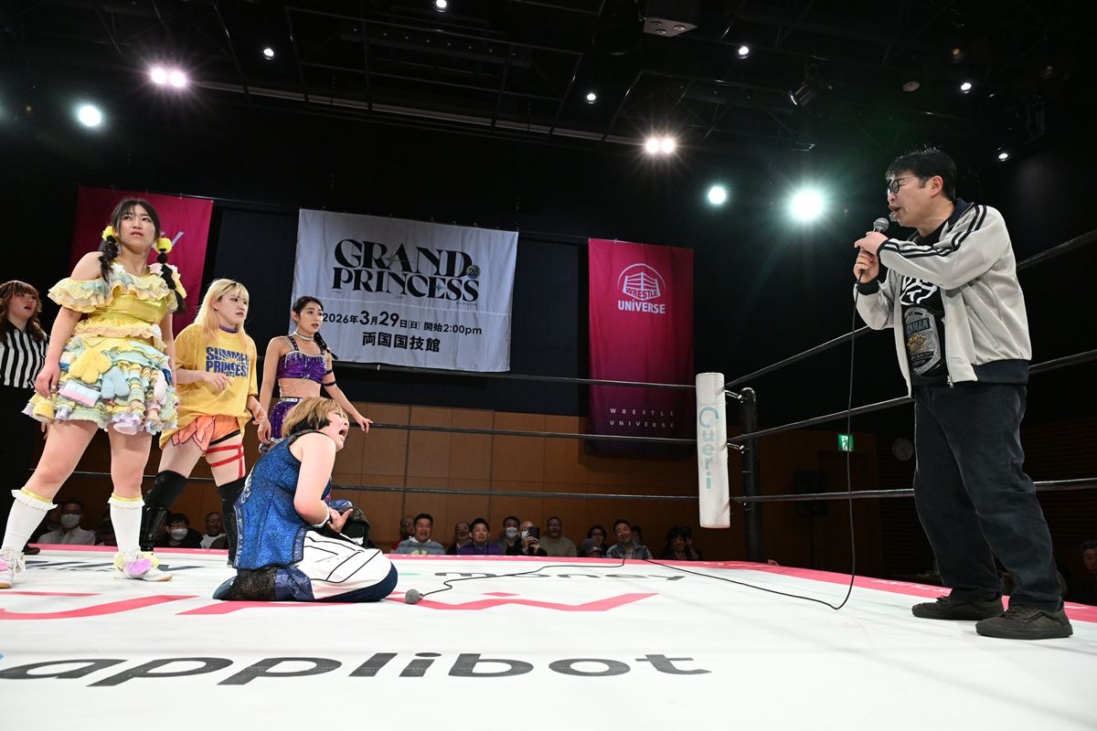 東京女子プロレスが「GRAND PRINCESS ’26」(3月29日、両国国技館)前の最後の国内大会「GRAND PRINCESS ’26 : FATE IN RYOGOKU」を同15日、東京・両国KFCホールで開催した。メインイベントでは3・29両国でプリンセス・オブ・プリンセス王座を争う、王者の渡辺未詩と挑戦者の荒井優希が熱闘ドロー。全選手が2年ぶりの大舞台に向け気合を入れた。