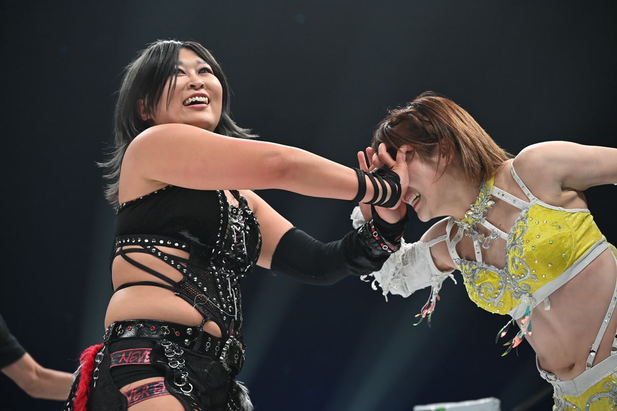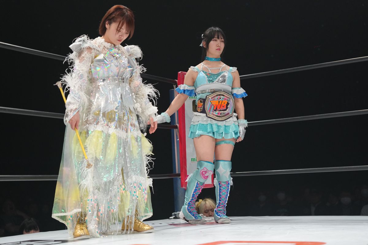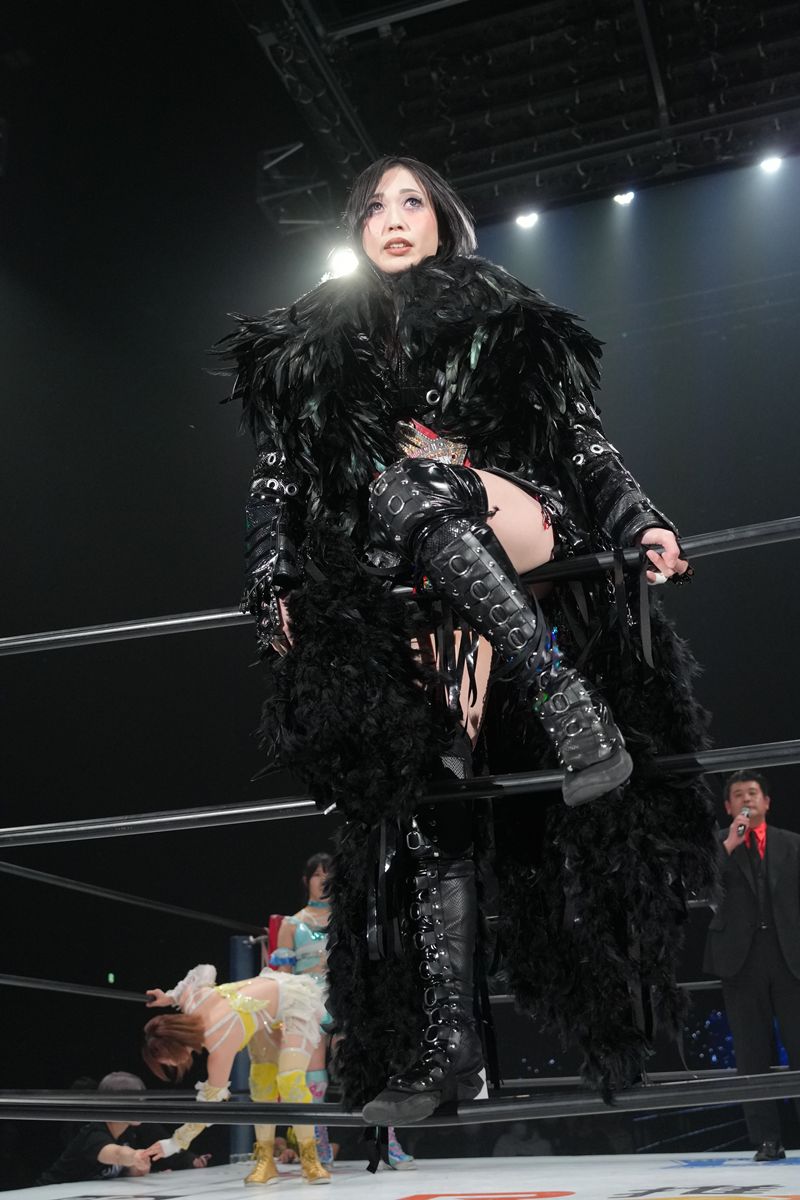 串刺し式のときめきスピアーで王者を追い詰めると、最後は引退した中野たむの魂を受け継ぐ必殺技、バイオレットスクリュードライバー(変形垂直型ファルコンアロー)を爆発させ、12分52秒、完璧なフォール勝ちを収めた。