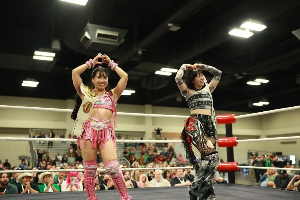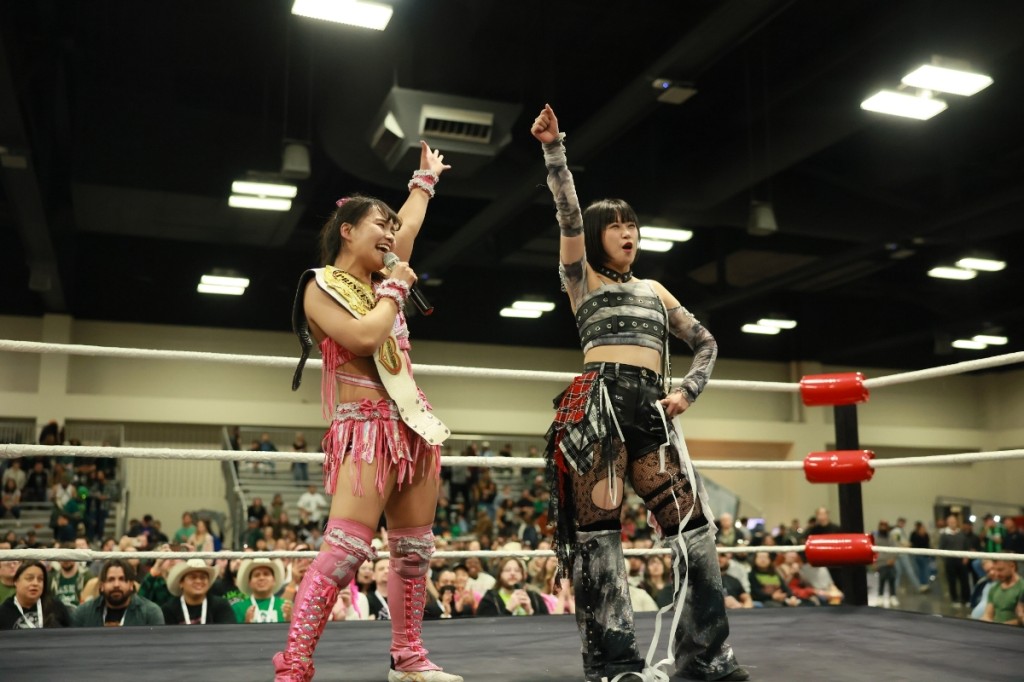 渡辺は「トゥモロー! 皆さん、明日もここで会いましょう! こんなにたくさんの皆さん、来てくれてありがとうございます。もっともっと東京女子プロレスをテキサスに広めていきたいので、ここからたくさんついてきて下さい!」とマイク。