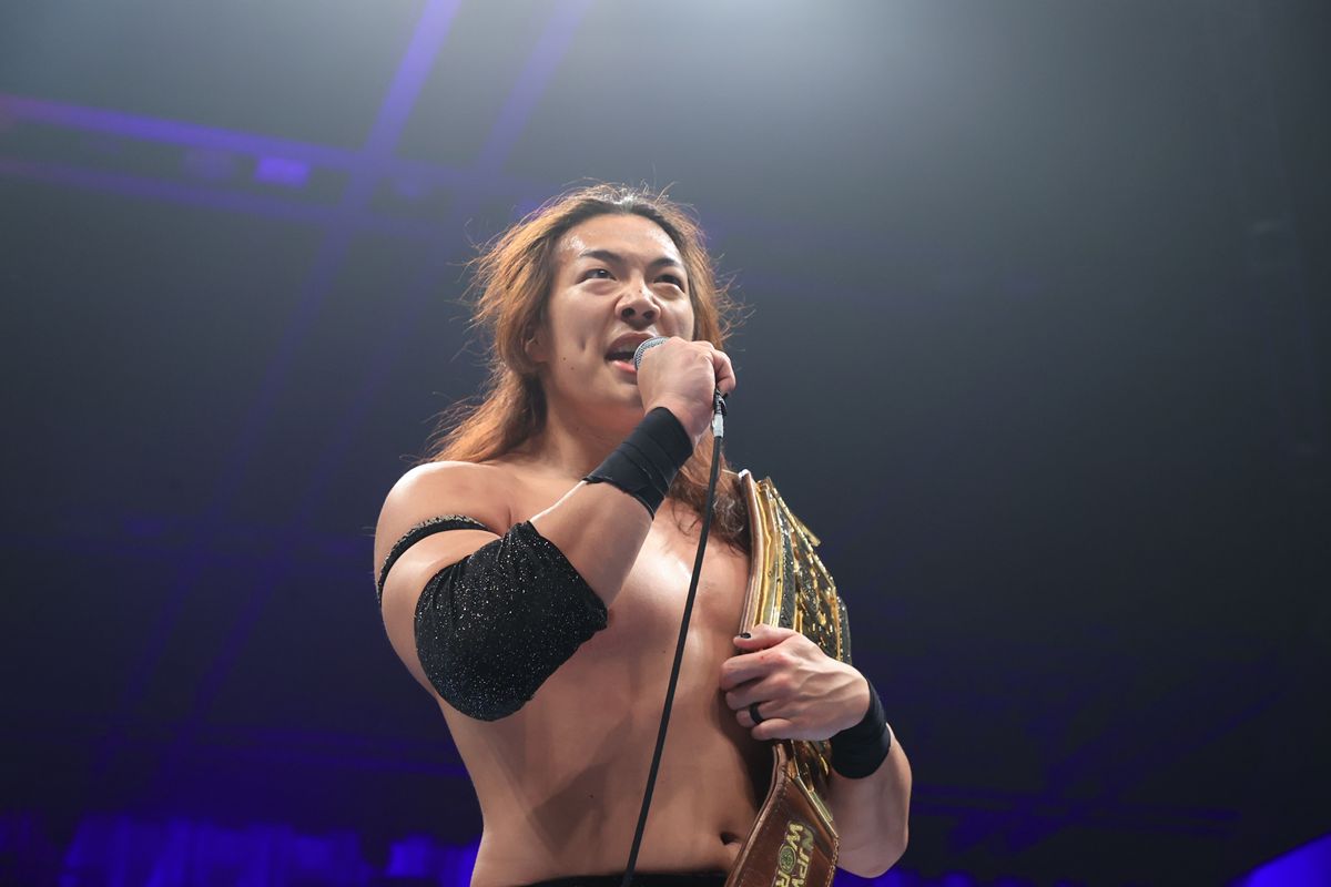 オープンチャレンジやから誰でもいいし、ヘビー、ジュニア、団体問わず、国籍問わず、誰でもいいから俺の前に来いって。最高のプロレスしようぜ。そして次、もしよければですけど、海野翔太選手、去年の負け、『G1 CLIMAX』でのあの借り、忘れてないんで。海野翔太、もしよければ、このベルト懸けて、俺とやろうぜ」