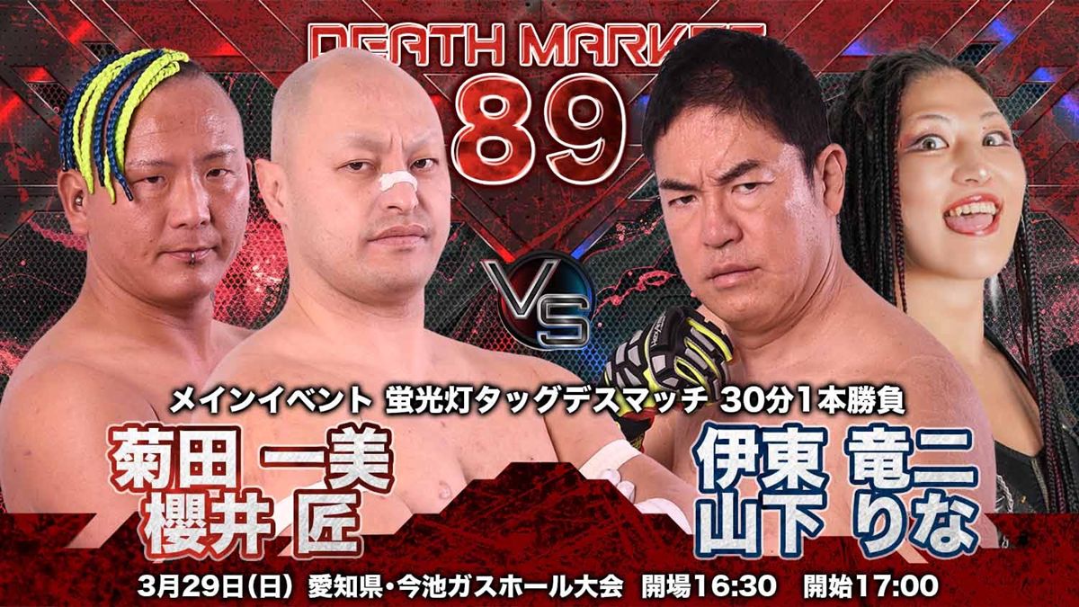 大日本プロレスは、3月29日(日)に愛知・今池ガスホールで開催される「Death Market89」の全対戦カードを発表した。