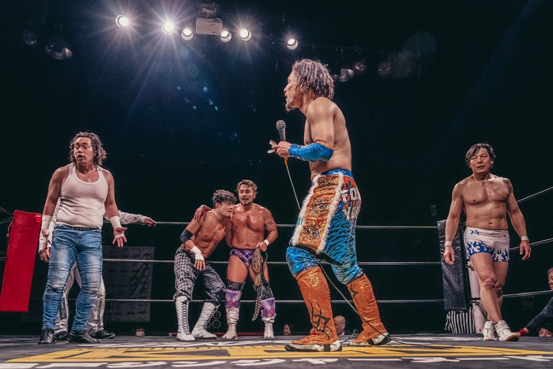 同王座は2023年5・5後楽園で初代王座決定戦が行われ、佐藤光留&前口が戴冠した。ところが、米国の業者に発注したベルトの納品が間に合わず。結局、ベルトが届かないうちに王座が勝村周一朗&和田に移動してしまった経緯がある。前口は「今成さんのおかげもあるけど、実力がないわけじゃないんで。しっかり勝ったんで。かつてはベルトを争った和田さんと組んでやらせていただきます。力を合わせてやっていいきましょう。今回はしっかり決めてベルトを巻きたいと思います」、和田は「もうかませ犬にはならない!」と気合を入れた。
