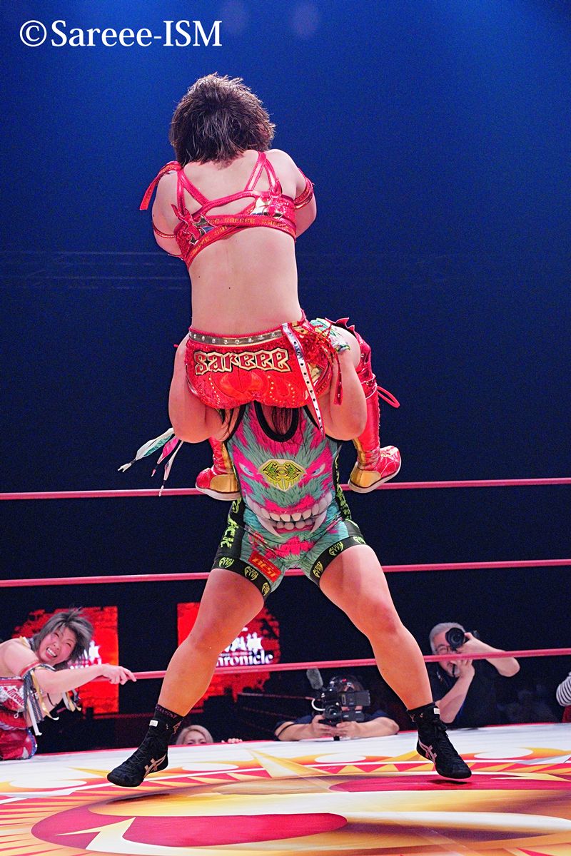 Sareee&彩羽匠(マーベラス)組 vs 朱里(スターダム)&橋本千紘(センダイガールズ)組。