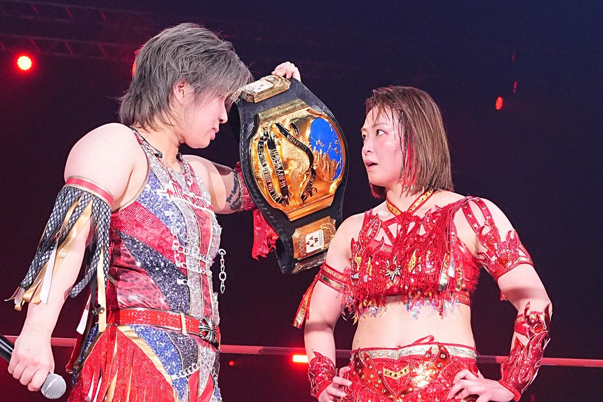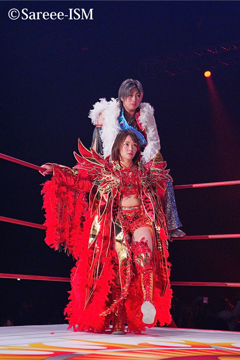 対するは、団体の垣根を越えて初タッグを結成した、現IWGP女子王者・朱里と、仙女ワールド王者・橋本。