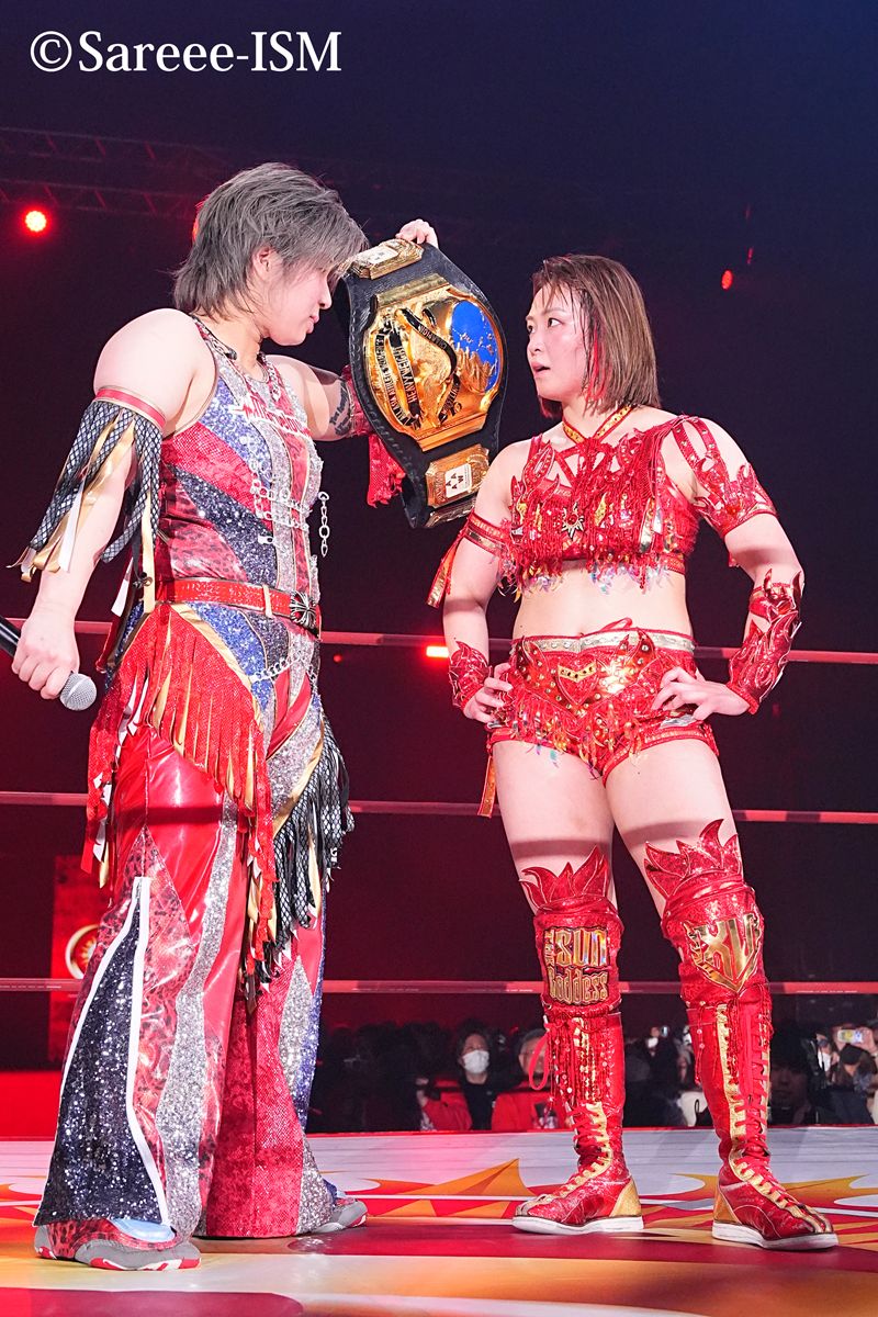 「私はこれから先も『太陽神Prism』、この島谷さんと一緒に作らせていただいた世界一最高な歌とともに女子プロレス界、いやプロレス界の顔に必ずなってみせます」