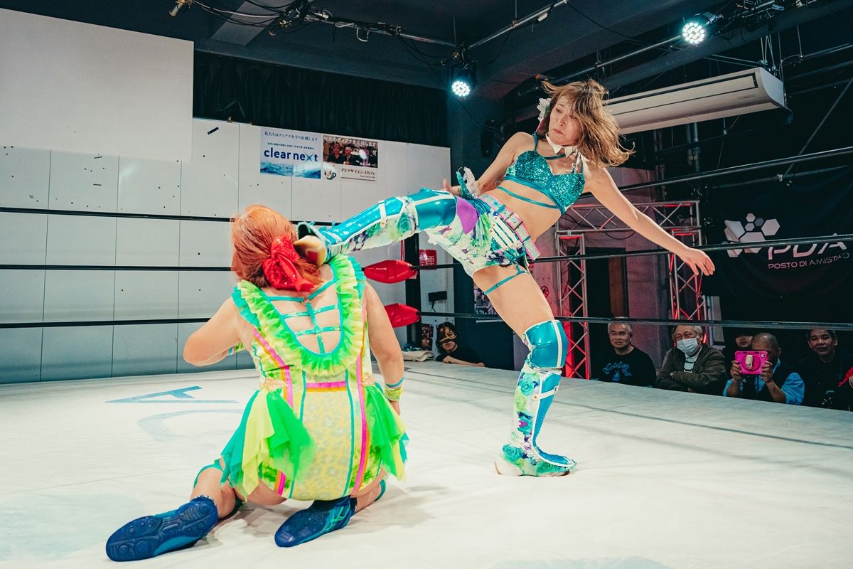 ○松澤さん&紫雷美央(13分26秒、体固め)しのせ愛梨紗&柳川澄樺●