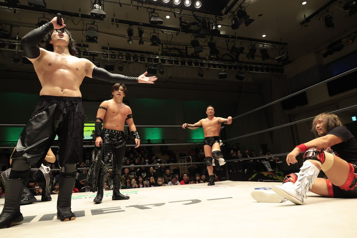 「せっかくさ、さくらをイメージしてピンクでやってきたんだ。ところが、どっからどう見てもドラゴン・ダイヤみたいじゃねえか。まあ、それは置いといて政岡純。スカした、ただのカッコつけじゃないな。しかしな、もっと来てくれよ。もっと熱くなってくんないとさ、俺も火がつかねえよ。このままだと内藤-OZAWAで、俺たち空気みたいな存在になっちまうぞ。しかし最後の一撃、カテエのはずるいぞ。何だ?お前。令和のダンプ松本でも狙ってんのか?あのカテエの今度から使うなよ。クソ」