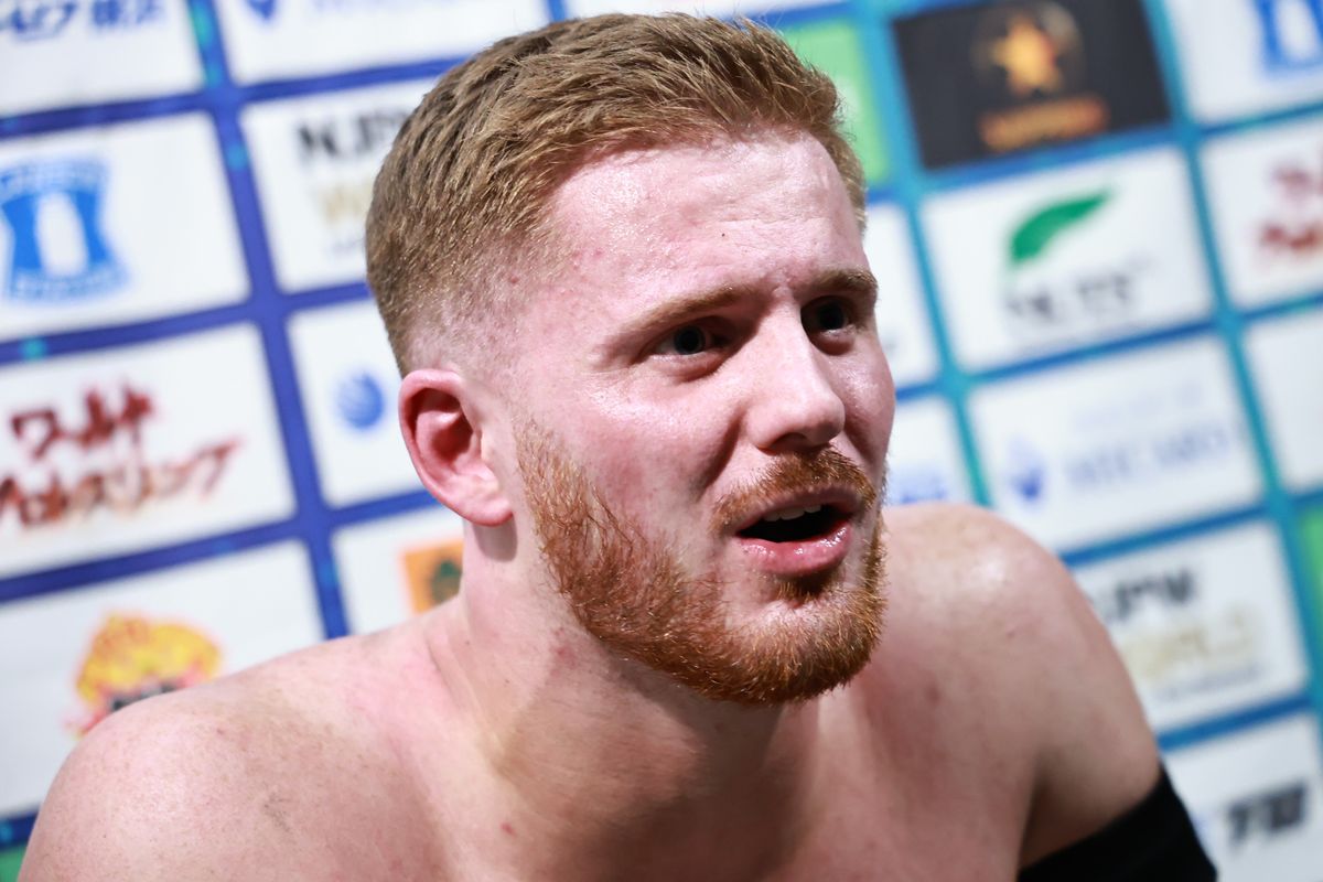 マイクを握った若武者は、不敵な笑みを浮かべながら王者を挑発し、ロビー・イーグルスとのタッグでの王座奪還をアピールした。