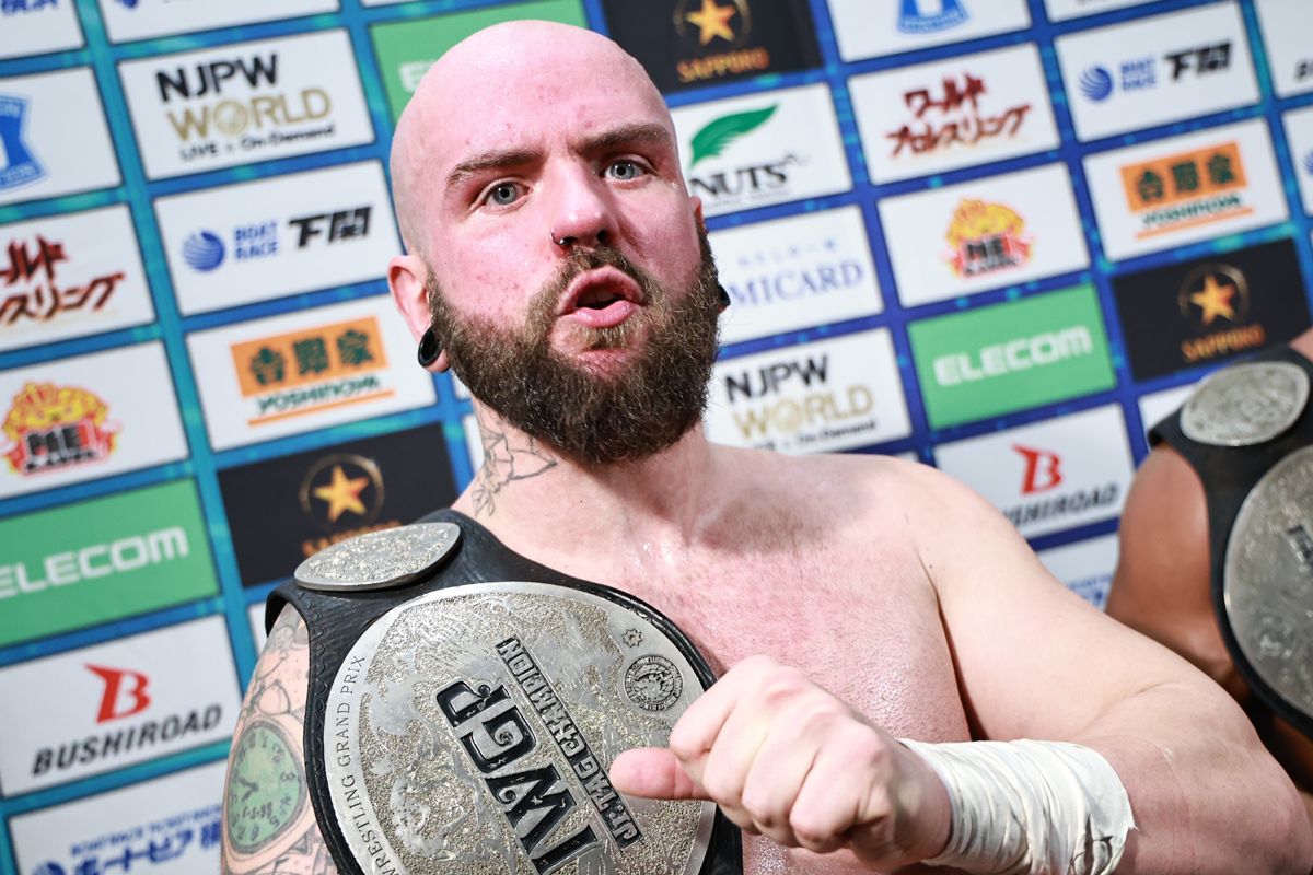 マイクを握った若武者は、不敵な笑みを浮かべながら王者を挑発し、ロビー・イーグルスとのタッグでの王座奪還をアピールした。