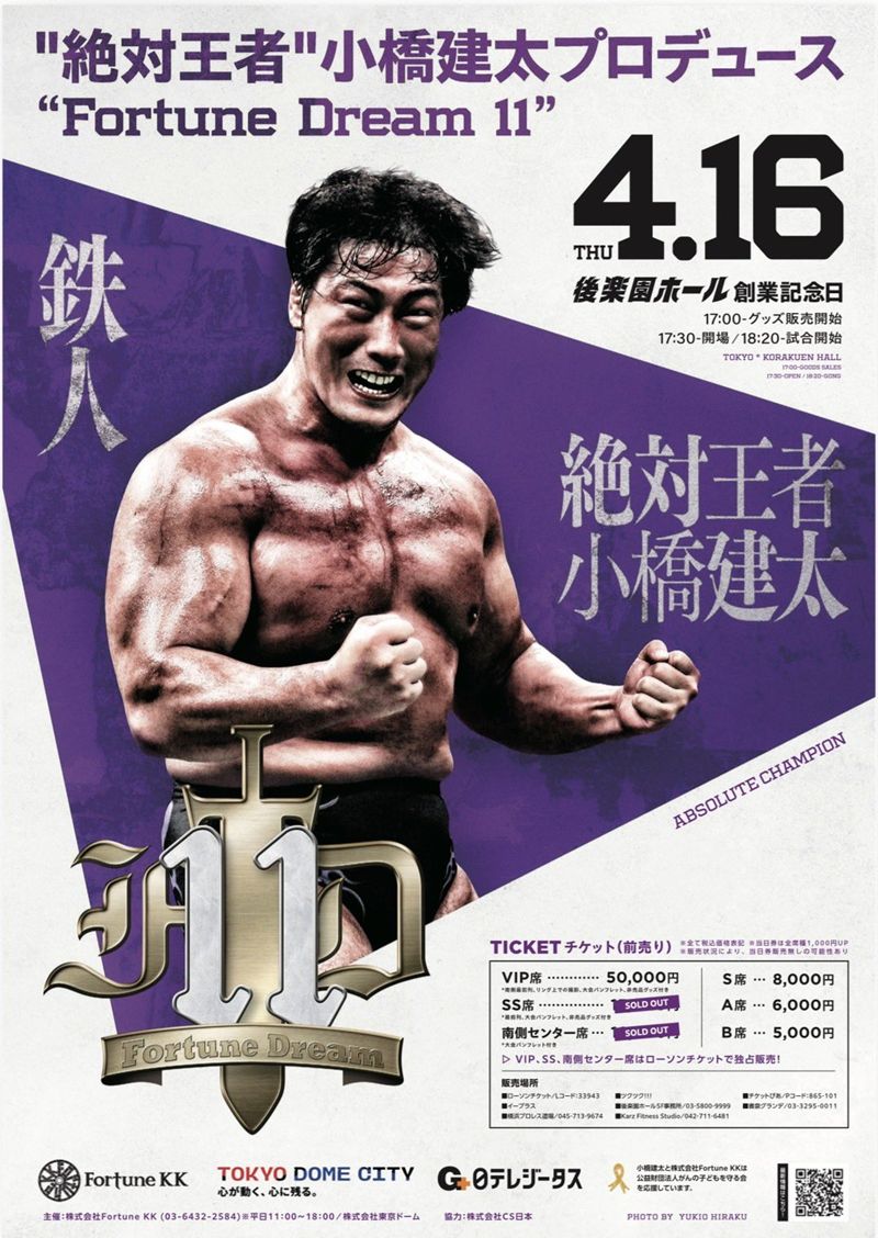 “絶対王者”小橋建太が完全プロデュースするプロレス興行『Fortune Dream 11』(4月16日、東京・後楽園ホール)の全対戦カードおよび試合順が発表された。