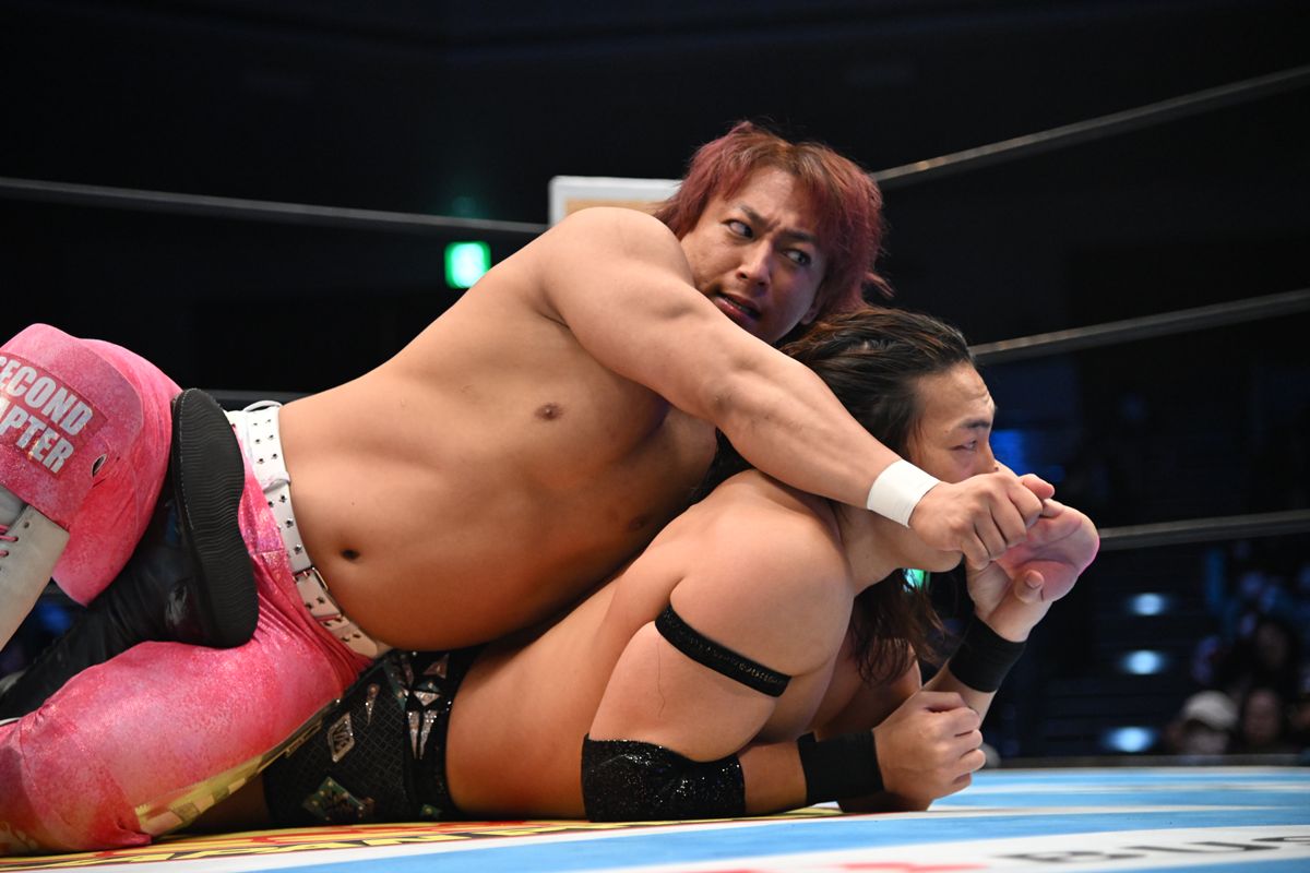 昨年の「G1 CLIMAX 35」公式戦において海野が勝利を収めているという背景もあり、TAKESHITAにとっては雪辱と王座防衛の両立が求められる闘いであった。