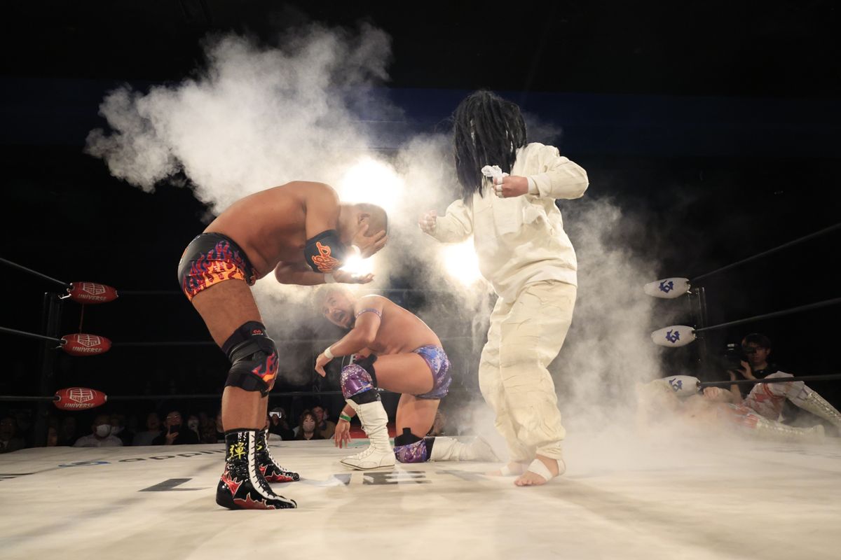 清宮海斗、黒潮TOKYOジャパン、正田壮史、今成夢人という異色のカルテットが、田中将斗、木髙イサミ、のはしたろう、そして謎の怪奇派レスラー・グレート・マミーの陣営と対峙したのである。