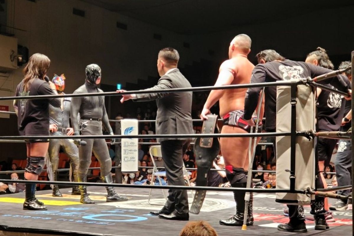 セコンドのISHINが菊田にボックスで殴打すると、箕浦康太がKAIに水を噴射。KAIが雁之助クラッチ狙いも、菊田は尻爆弾。菊田は変型ドライバーから、ローリング・ラリアットを叩き込んで3カウントを奪い、25分超えの激闘に終止符が打たれた。