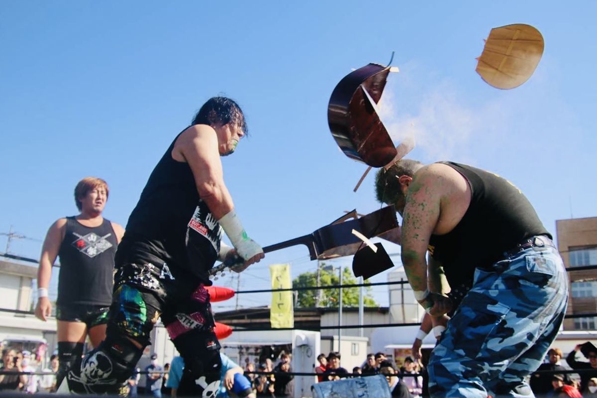 大仁田厚が血染めの電流爆破バットで大逆転!地元・佐藤嗣崇とのタッグで山梨の「イジメを爆破」