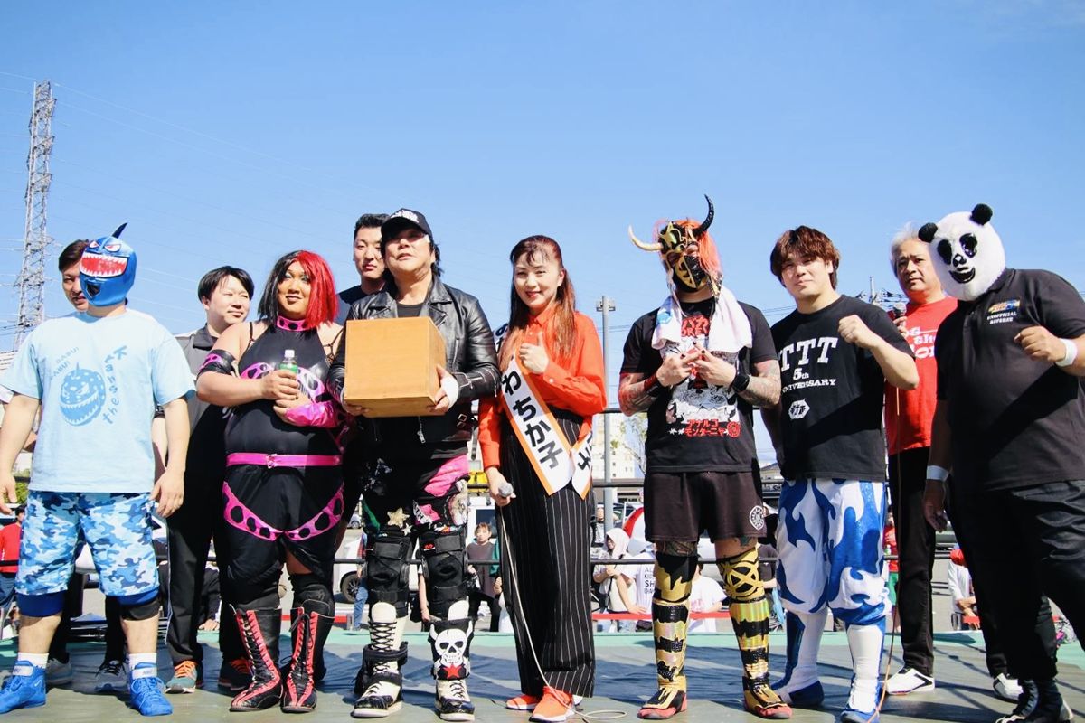 JA山梨みらいの直売所前に設けられたリングで、プロレス3試合とキッズダンスのパフォーマンスが行われ、メインイベントは電流爆破マッチが行われた。