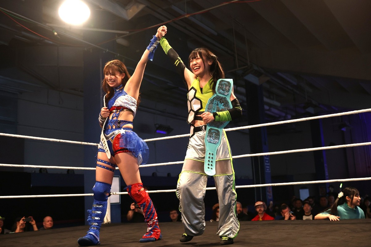 「DAY2」のメインイベントでプリンセス・オブ・プリンセス王者・荒井優希と鈴芽が王者タッグを結成し、J-ROD&ハットリと対戦。ラスベガス決戦で荒井はJ-RODとのタイトル戦に臨むため、同大会に向けてのダブル前哨戦となった。