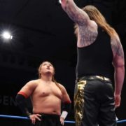 荒井はビッグブーツでやり返した。荒井がJ-RODにドロップキック、鈴芽はフェースクラッシャーを見舞った。ハットリはJ-RODとの合体式ボディプレスを鈴芽に決めた。鈴芽はエプロンからハットリに断崖式フェースクラッシャー。J-RODとハットリが再度合体式ボディプレスを狙うも荒井が回避。J-RODはケタ違いのパワーで2人まとめて担ぎ上げてバックフリップ。