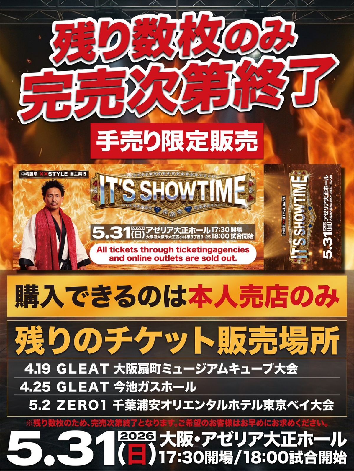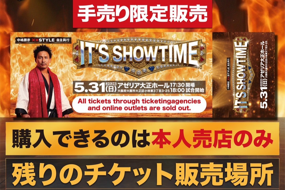 残りわずかとなっており、完売した時点で販売終了となるため、歴史的興行の目撃者になりたいファンは、直近の大会会場へ急ごう!
