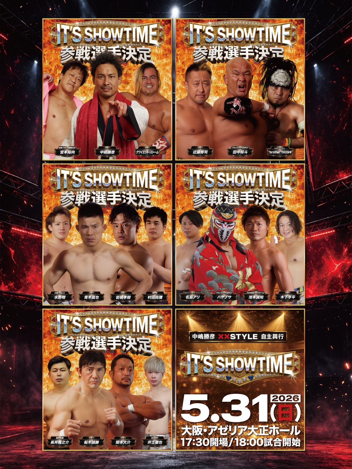“闘魂スタイル”中嶋勝彦が主催する自主興行「XX STYLE ~IT’S SHOW TIME~」の、全参戦選手およびチケットの最新販売状況が発表された。