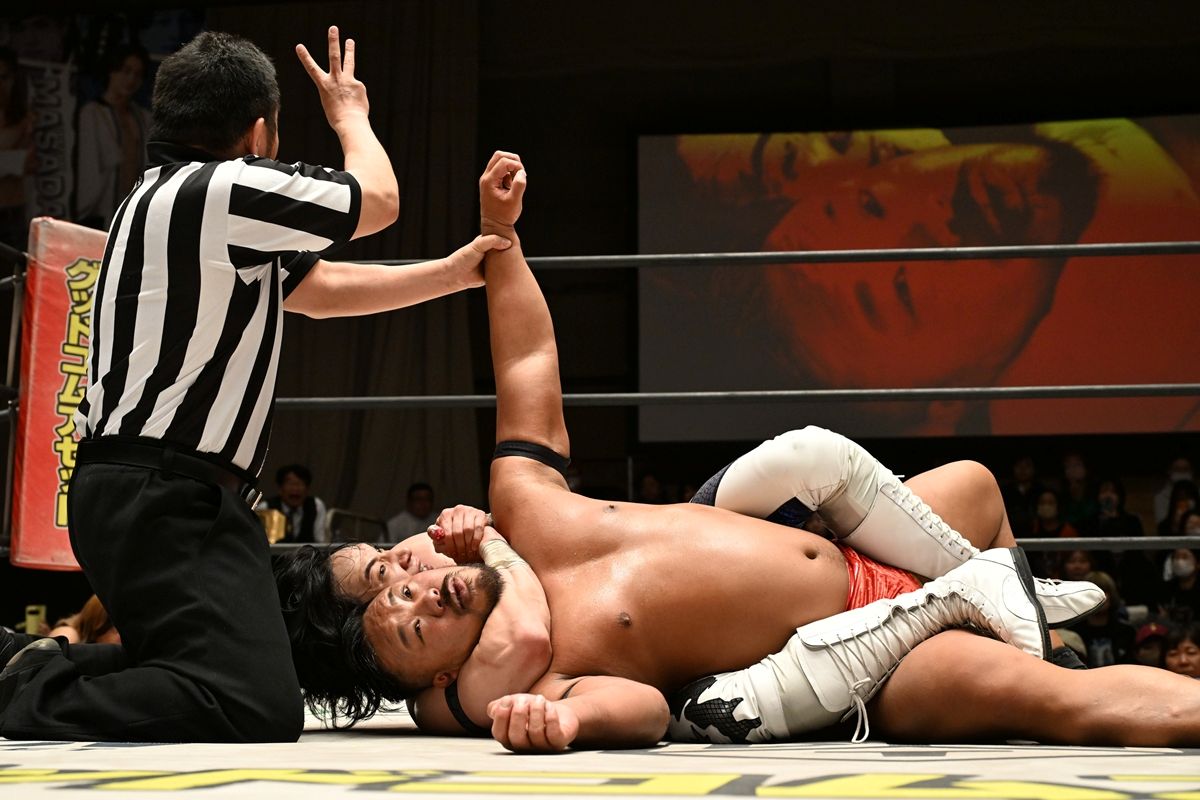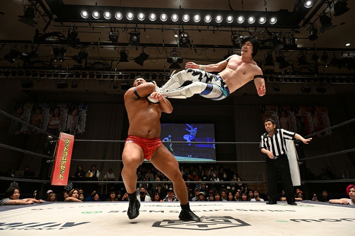 DDTプロレスが4月15日、東京・後楽園ホールで「DREAM LIGHTS 〜水曜日のDDTどうでしょう〜」を開催した。KO-D無差別級王者・上野勇希が大熱闘の末に飯野雄貴を破り、7度目の防衛に成功した。