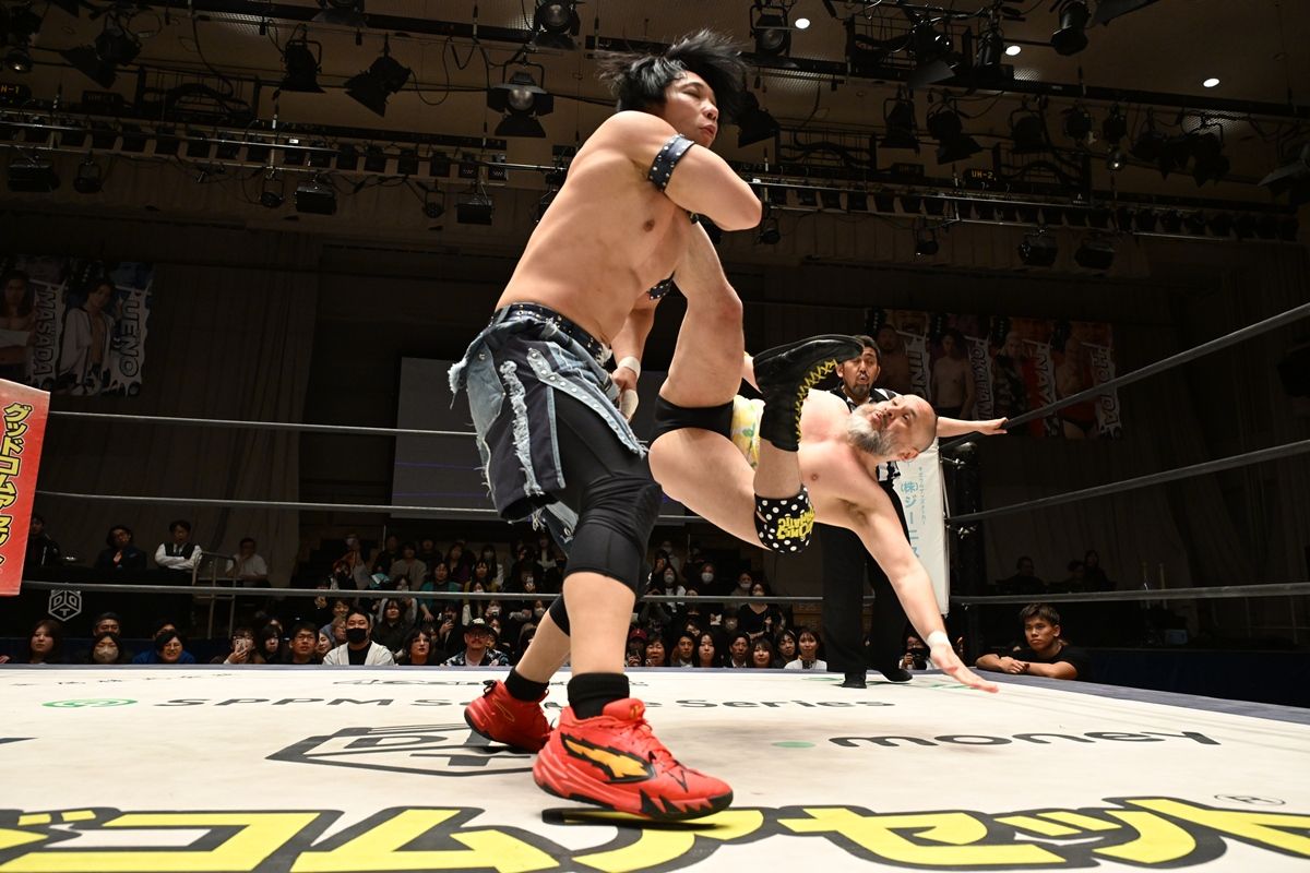 2人は昨年6・9後楽園での「DDTプロレス×新日本プロレス 一面対抗戦」で仲良くなった。あれから10ヵ月の月日を経て、シングルマッチで相対した。