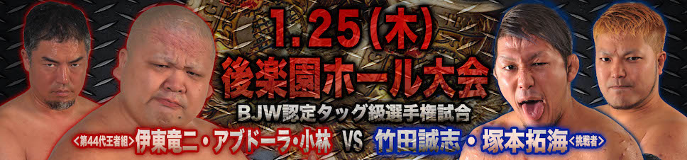 【大日本プロレス】BJW認定タッグ&ジュニアの2大タイトルマッチ開催! 1/25(木)東京・後楽園ホール大会 カード情報