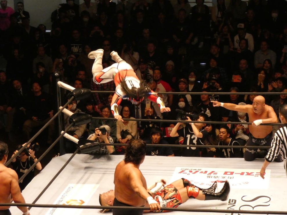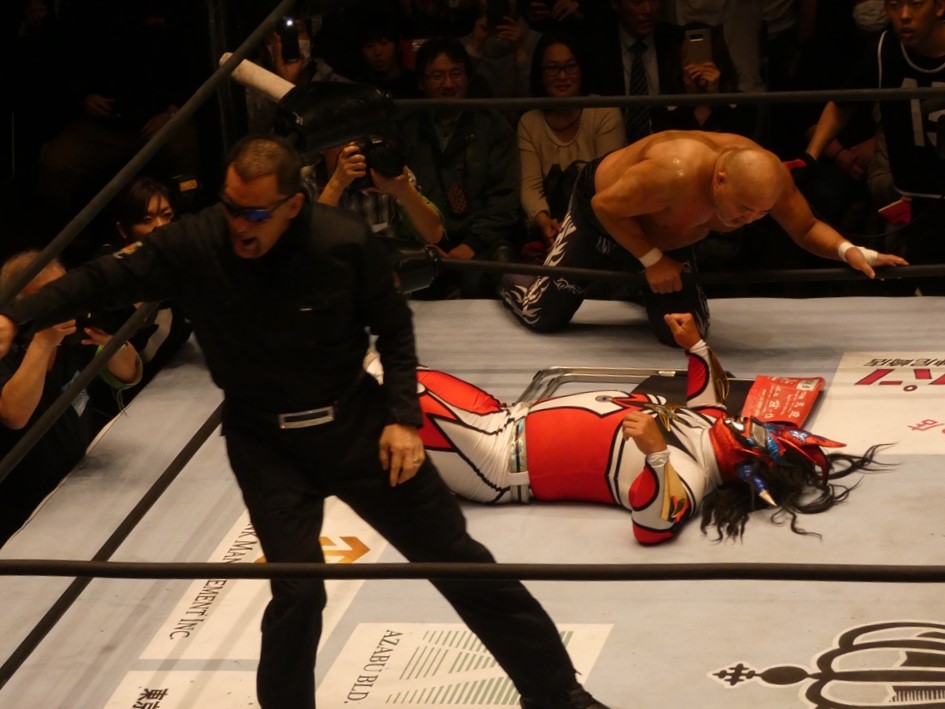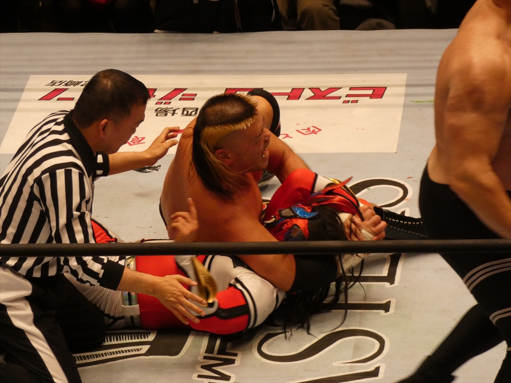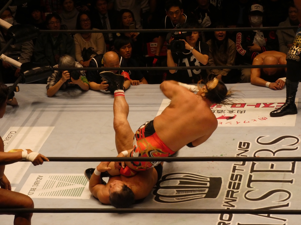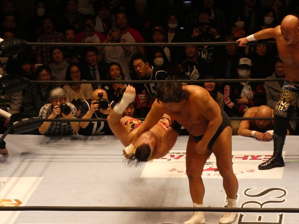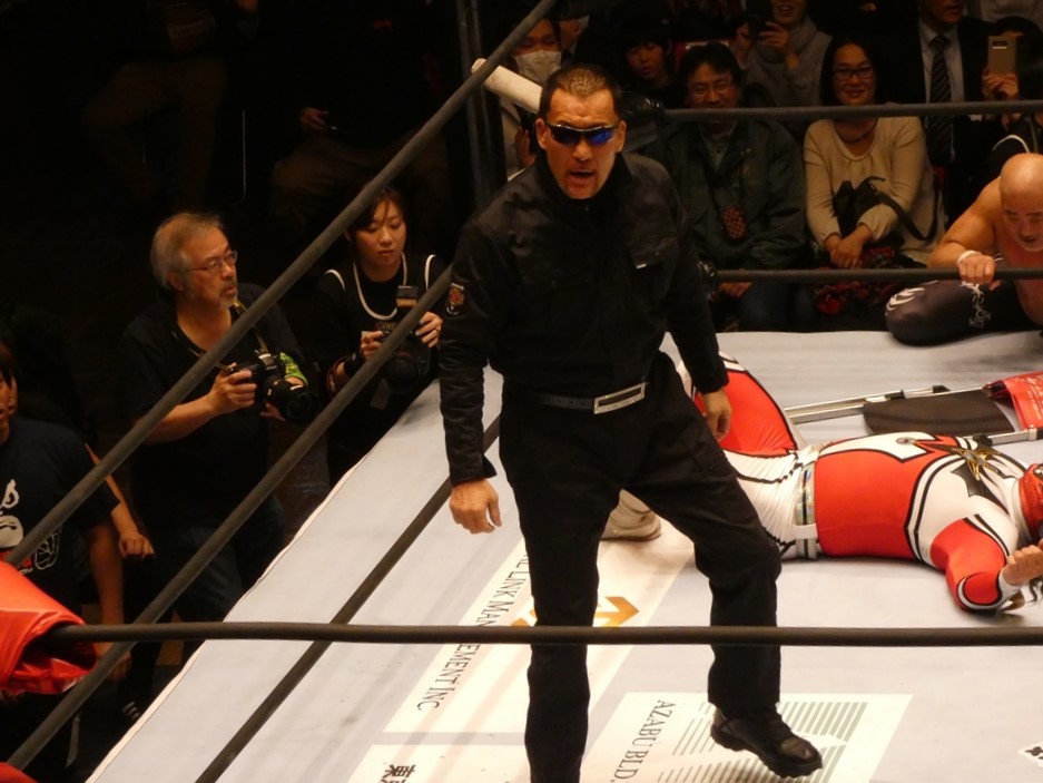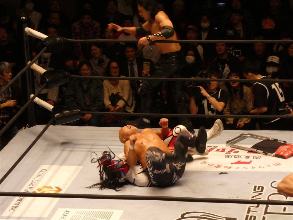 蝶野「俺も、マスターズという大会がいいのか悪いのか、はっきり判断がついてないですね。一生懸命やっている選手だし、キャリア40年以上の選手たちがリングに上がっているということの素晴らしさもあるし。現に若い選手たちが体を張ってやっている団体もあるし。一応ひとつの先頭集団は繋がるのかもしれないけど、同じものではないだろうという考え方もあるでしょう。やっぱりそこは、上がる選手たちが、今日なんかも、相手の選手は、我々の15年前、20年前の部分で、はっきり言って胸くそ悪い連中の集まりですから。リング上でも言いましたけど、美味しいところをとにかく全て持っていくと。たぶん今日向こうはね、試合の中で1つか2つしか美味しいところはなかった。そこをハイエナのように、彼らは群がる。で、今日みたいに8人タッグ戦っていうのは、ここはチームワークです。ここはコントロールするという。そういうところでT2000というのは、新日本の中でいろいろな時代のチームがある中でも、ヒロ(斉藤)さん中心に、チームワークの配分というのは、俺は鉄壁なチームだと思います。今日もみんな昔のコンディションではないと思うけど、その中でも素晴らしい役割を果たしたと。力的には向こうのほうが上だったかもしれない。でも、今日はスーパーJをいきなり呼んで来たところで、ちゃんと役割を決めた中で試合をやるというね。それは俺らの実力だし、それはしっかり見せれたことは良かったなと思います。」