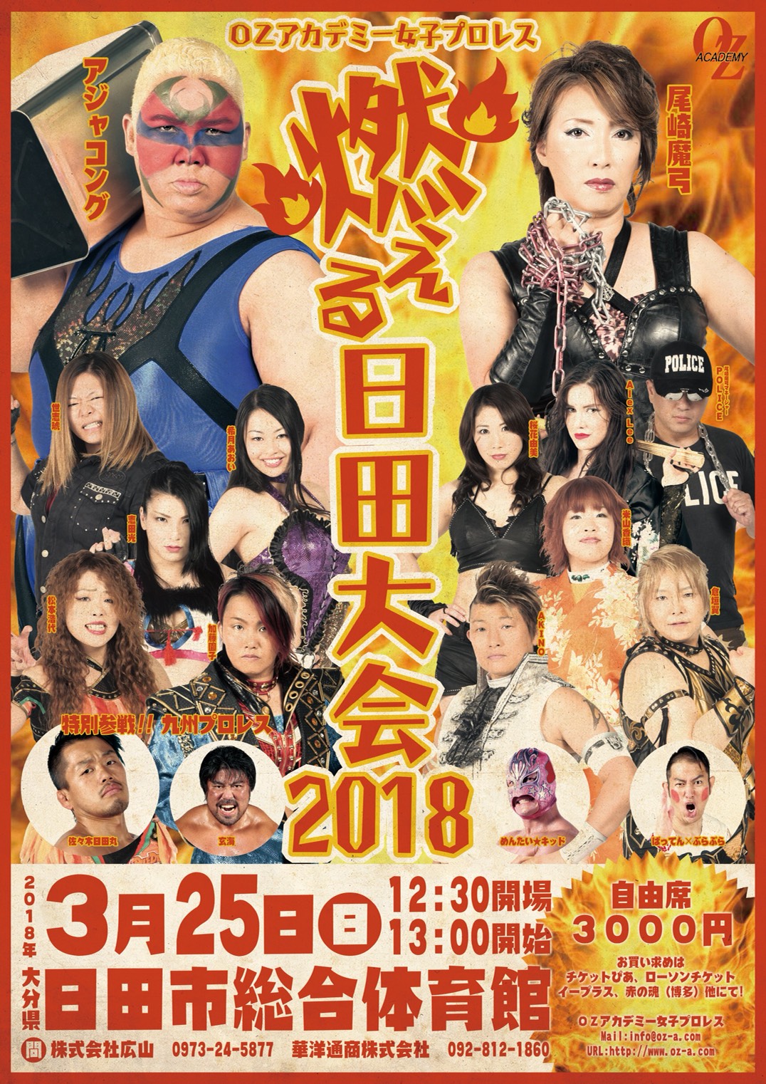 【OZアカデミー女子プロレス】3.25『燃える日田大会2018』九州プロレス提供試合含む、全対戦カード発表!