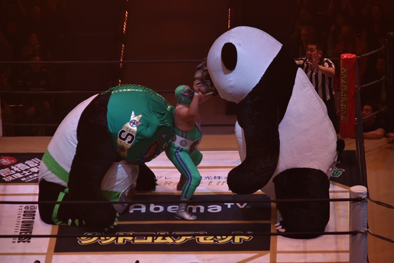 【DDT】大注目のスーパー・ササダンゴ・マシンvsアンドレザ・ジャイアントパンダの一戦にまさかのジャイアント・ササダンゴマシンが登場!2頭の巨獣対決もアンドレザが意地の勝利!!