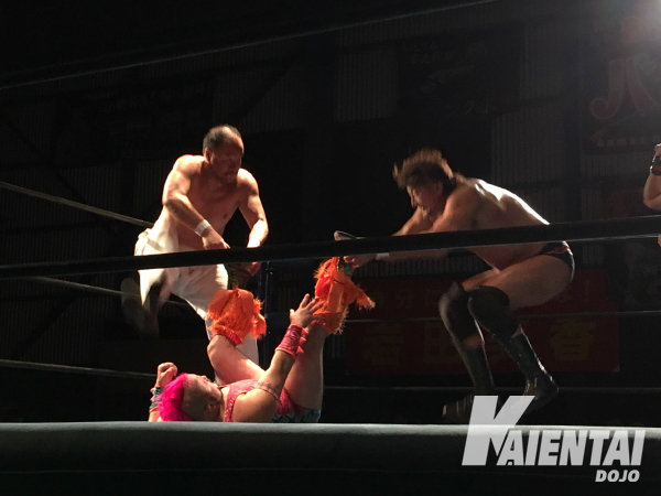 ○越中詩郎(フリー)&大森隆男(全日本プロレス) vs 吉野コータロー&●ダイナソー拓真 with 遊馬