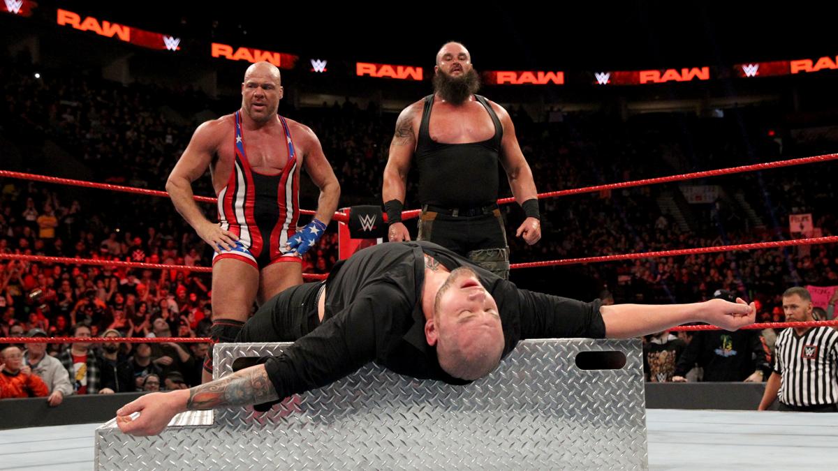 カート・アングル&ブラウン・ストローマンがロウのメイン戦でバロン・コービン&ドリュー・マッキンタイアとタッグ戦で激突した。