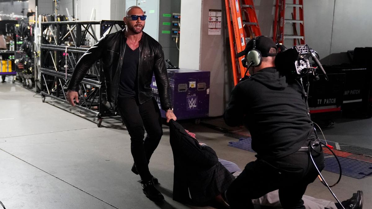 すると、バックステージでは突如バティスタが現れて、控室から襲撃したフレアーを引きずり出した。