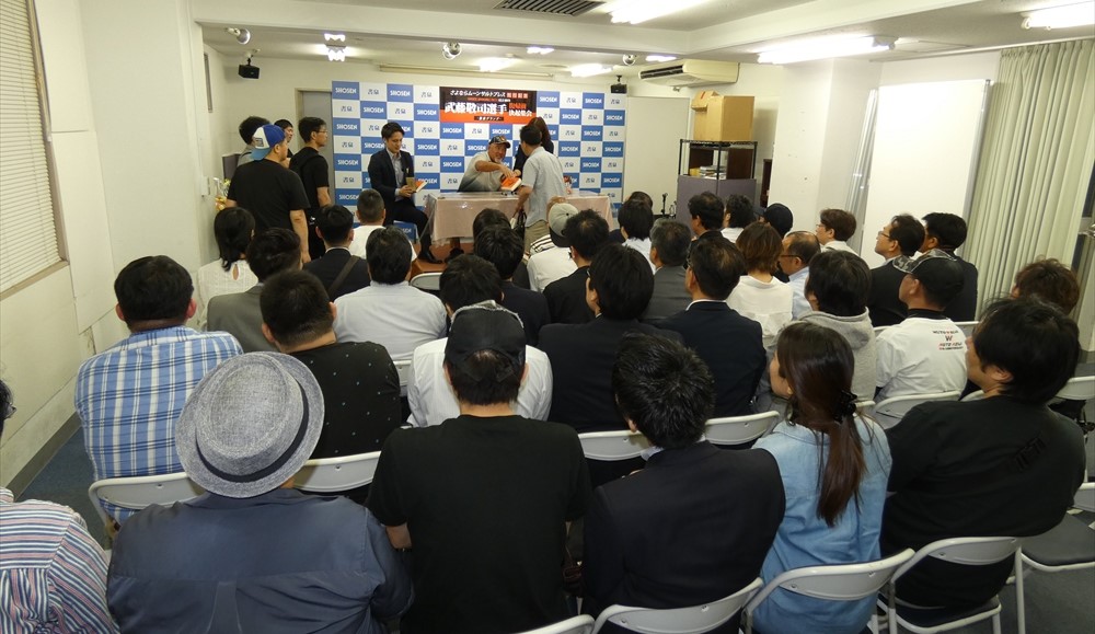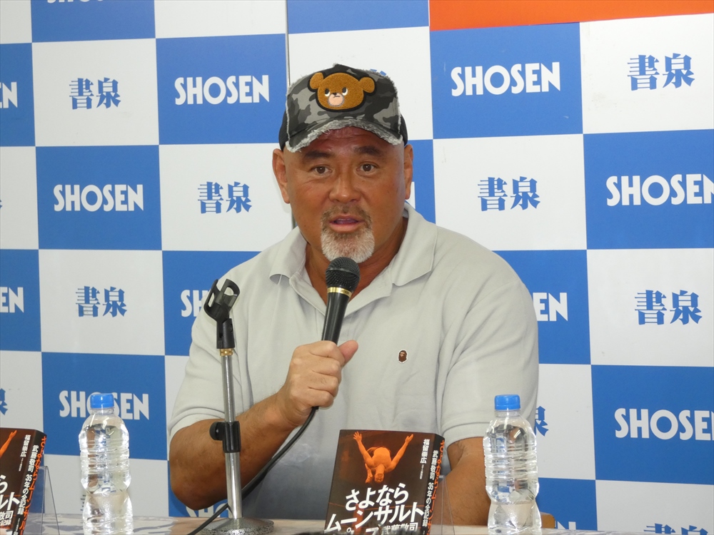 24日、東京・神保町にある書泉グランデにて武藤敬司が『さよならムーンサルトプレス』刊行記念 武藤敬司選手復帰前決起集会に登場した。