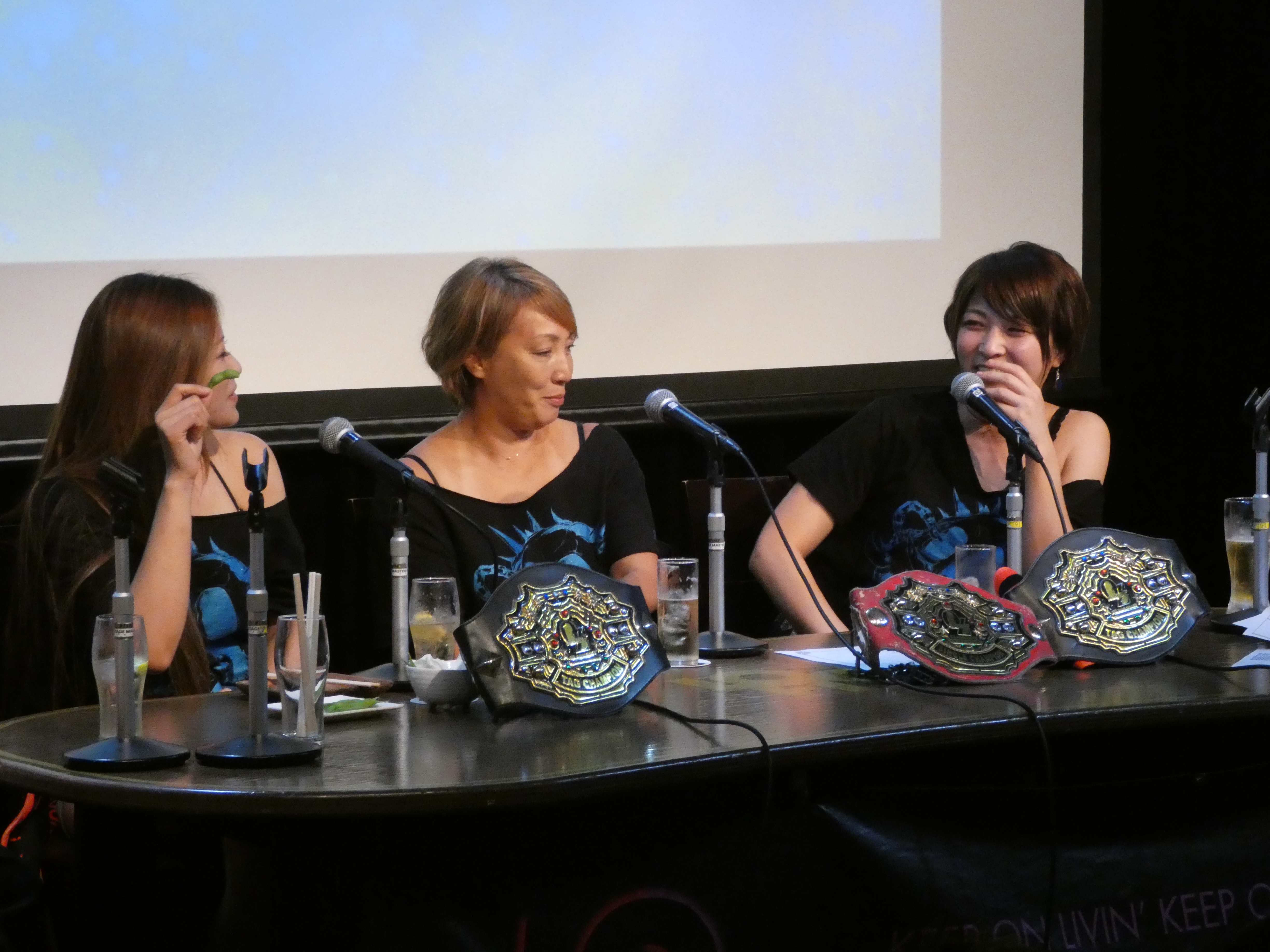 プレゼントにファンから貰って嬉しかったものについて安納選手が「会場に来てくれるだけで嬉しい」とコメントするとここでも尾崎選手が「なんだよそれ(笑)」と突っ込みを入れると会場から笑いが起こった。