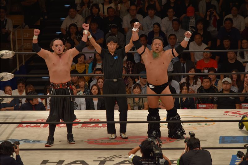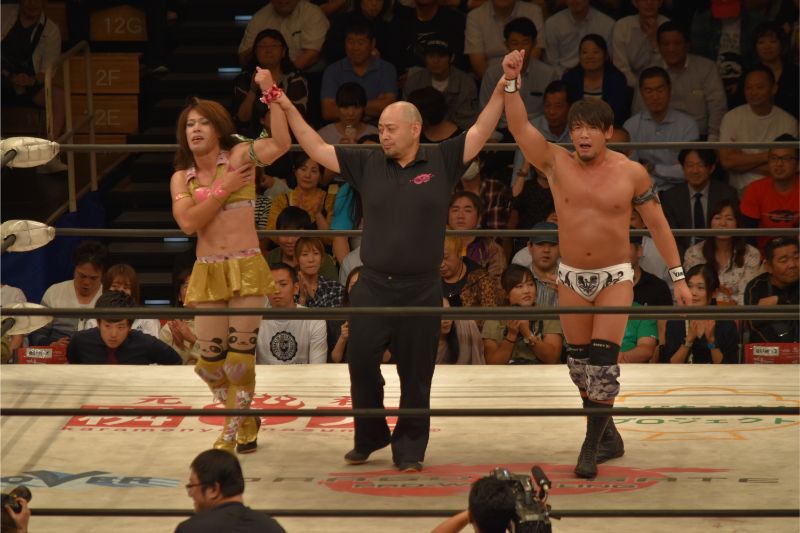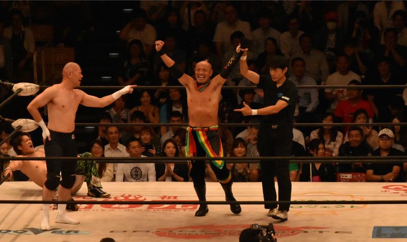 最後は神田がウルティモ・ドラゴン校長を抑えつけるEitaに凶器攻撃。そのまま校長が丸め込み勝利