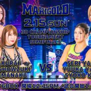 10月8日(日)大阪アゼリア大正 13:00試合開始《12:30開場》 観衆320人超満員 第1試合 シングルマッチ 10分一本勝負 ●愛海vs木村花○ 8:50逆エビ固め 第2試合 シングルマッチ10分一本勝負 △門倉...