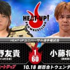 【HEAT-UP】10.18新百合ヶ丘は3大タイトル戦! 秦野が小藤と、TAMURAが翔太と、大家組は初防衛戦
